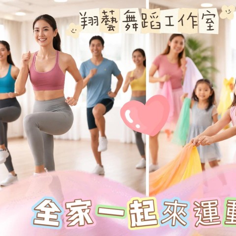 全家一起來運動!親子共學課程熱情招生中 孩子在歡樂的故事中跳舞, 爸媽同時在隔壁教室動起來! 萌童K-POP 透過音樂與肢體律動, 培養孩子的節奏感、想像力與表達力。 成人有氧運動課 簡單好上手的有氧課程, 讓爸媽在忙碌生活中也能輕鬆流汗、釋放壓力。 主打課程特色 孩子學舞蹈,...